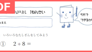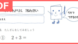 冒頭のタイトルや出題の文章はすべてひらがななので小学生が自習で使う事も可能です。5分で出来るかなというメッセージもあります。小学生の勉強に有効活用出来る計算度ぢるの無料ダウンロード可能素材をプリントアウトして使いましょう。