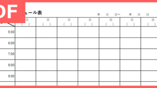 24時間をプランしやすい無料で使えるPDFのタイムスケジュール表テンプレートです。縦型なので上から下に時系列に管理がしやすいテンプレートとなっています。横型のタイムスケジュールになると縦に詠み進める為には途中で改行をして2in1にしないといけないので気持ち悪さを感じてしまう方もいるかもしれません。