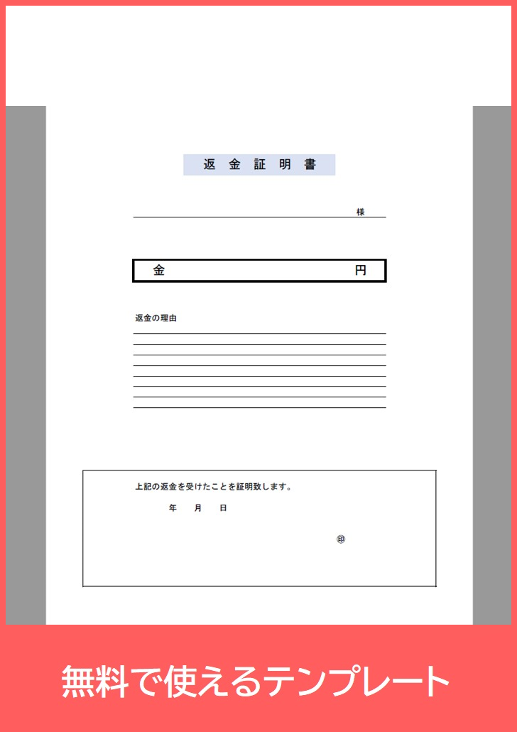 また、基本的な書き方が分かりやすいレイアウトになっているため、個人間の取引やネットショップの返金対応、サービス利用料の返金など、さまざまなシーンで活用できます。