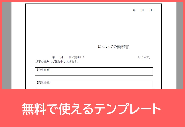 また、この顛末書は社内の報告書としてだけでなく、状況によっては社外への説明資料としても利用できる構成になっています。たとえば、業務中の事故やルール違反などの問題が発生した場合、事実関係や再発防止策を整理して報告する際に役立ちます。会社の規則違反などのケースでも、経緯を明確にする書類として活用できます。