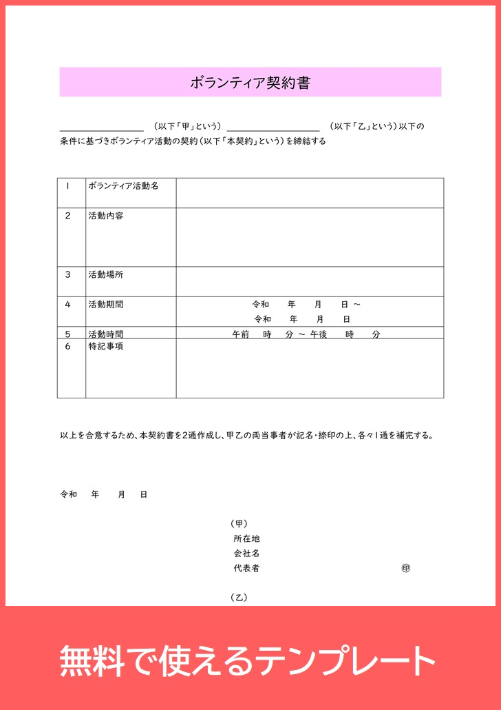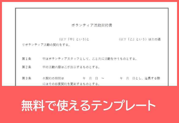 ボランティア契約書のPDFテンプレートを無料ダウンロードしてトラブル予防:A4